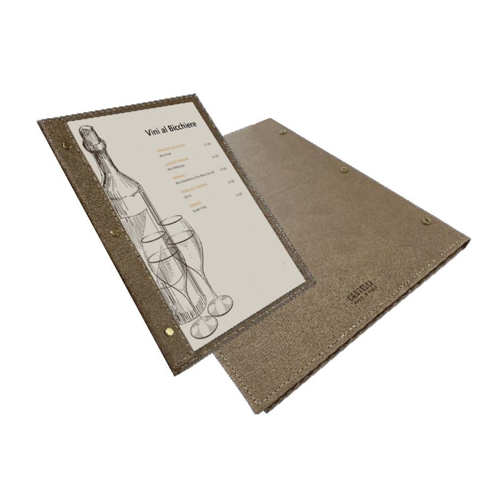 – Carta dorso con pattina di copertura e 3 livelli apribili per inserimento menù/carta