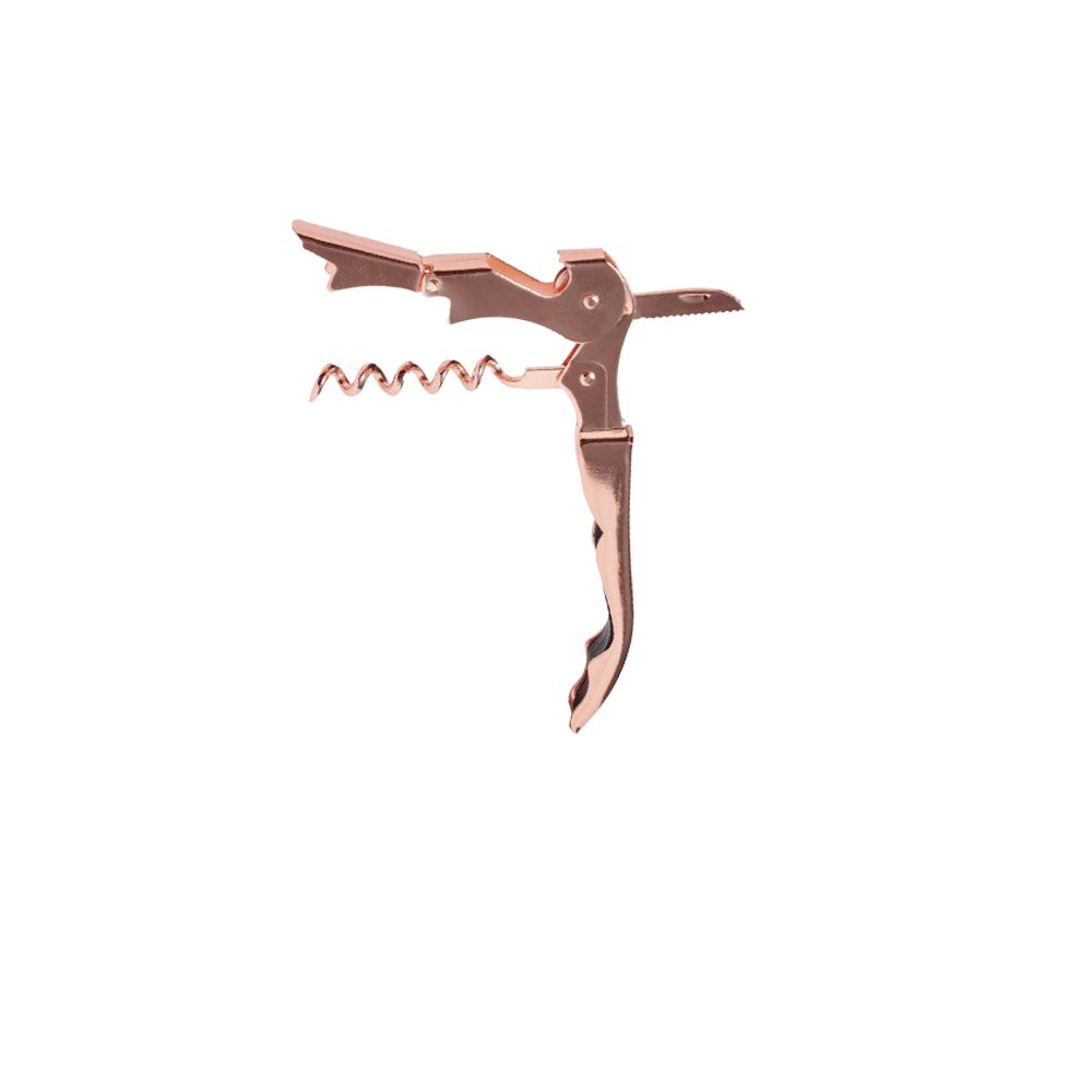– 1 cavatappi, 1 leva turacciolo, 1 coltellino per capsule e leva a doppia cerniera integrati
