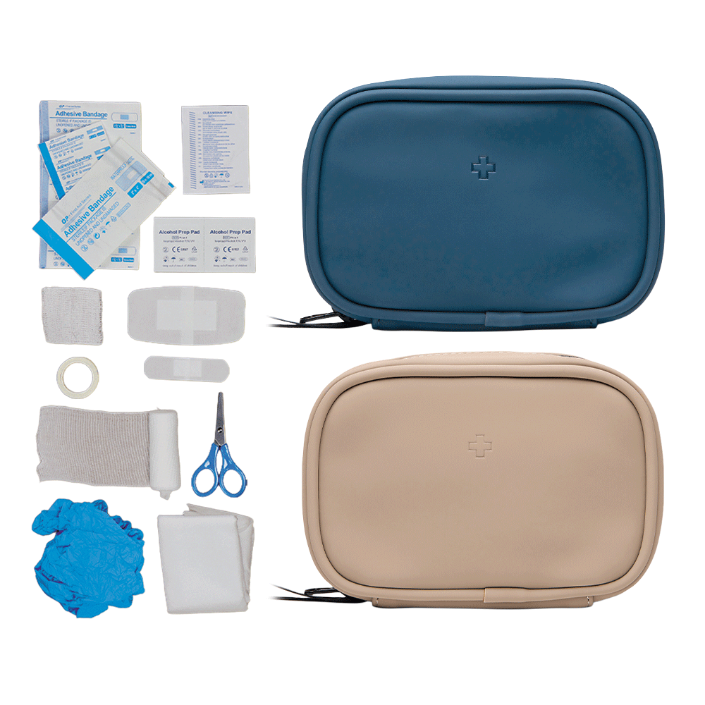 CONTIENE: guanti, forbici, cerotti, bende, garze compresse sterili, nastro sanitario, etc.