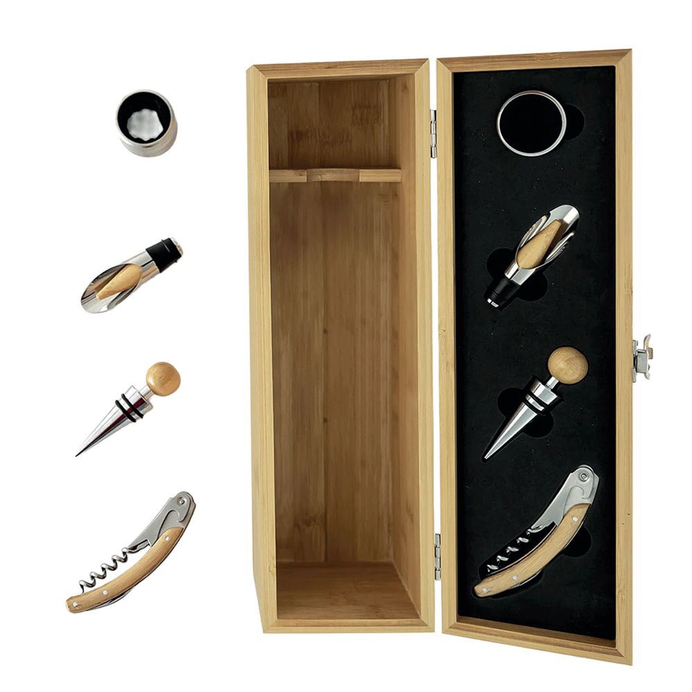 – Portabottiglia, cavatappi/apribottiglia, anello antigoccia, tappo, tagliacapsule