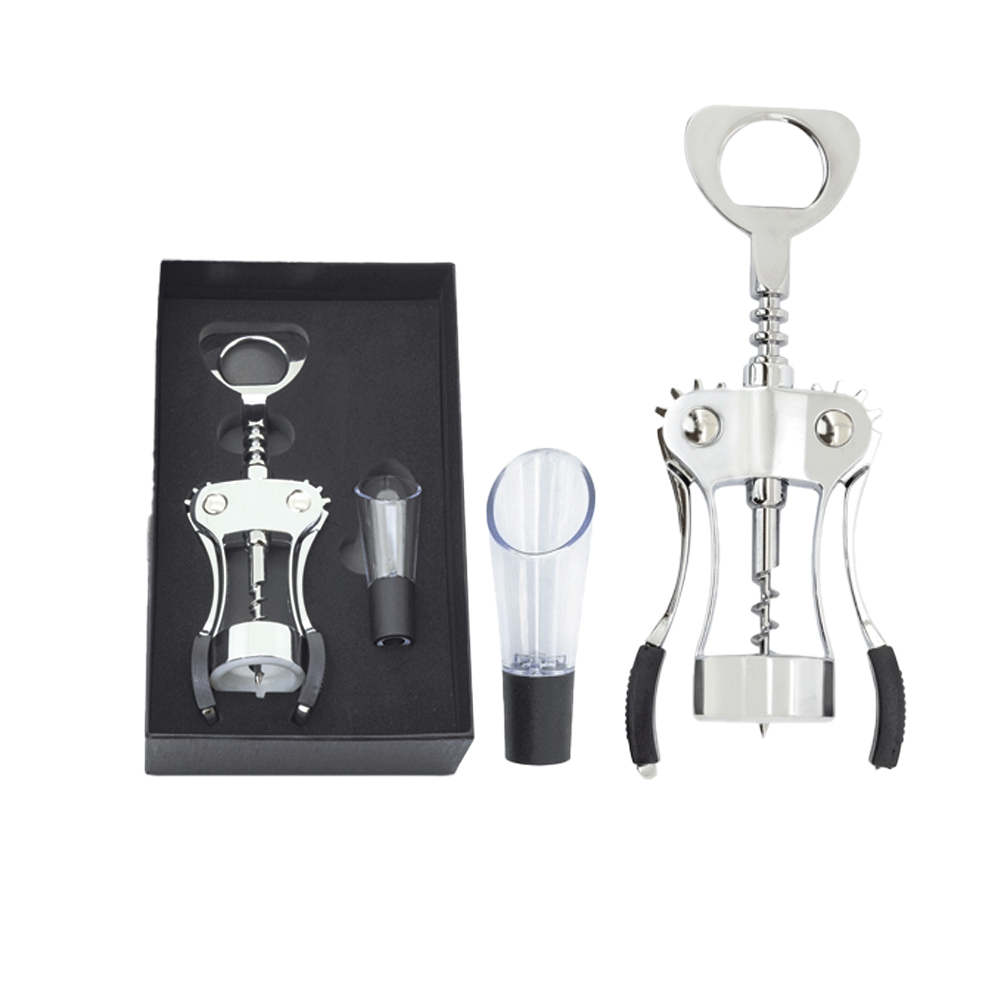 – Cavatappi realizzato in acciaio inox finitura cromata lucida con impugnatura in gomma soft
