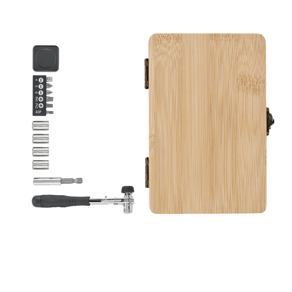 13 funzioni di utilità: punte per cacciaviti, chiavi a bussola, adattatore, connettore e flessometro