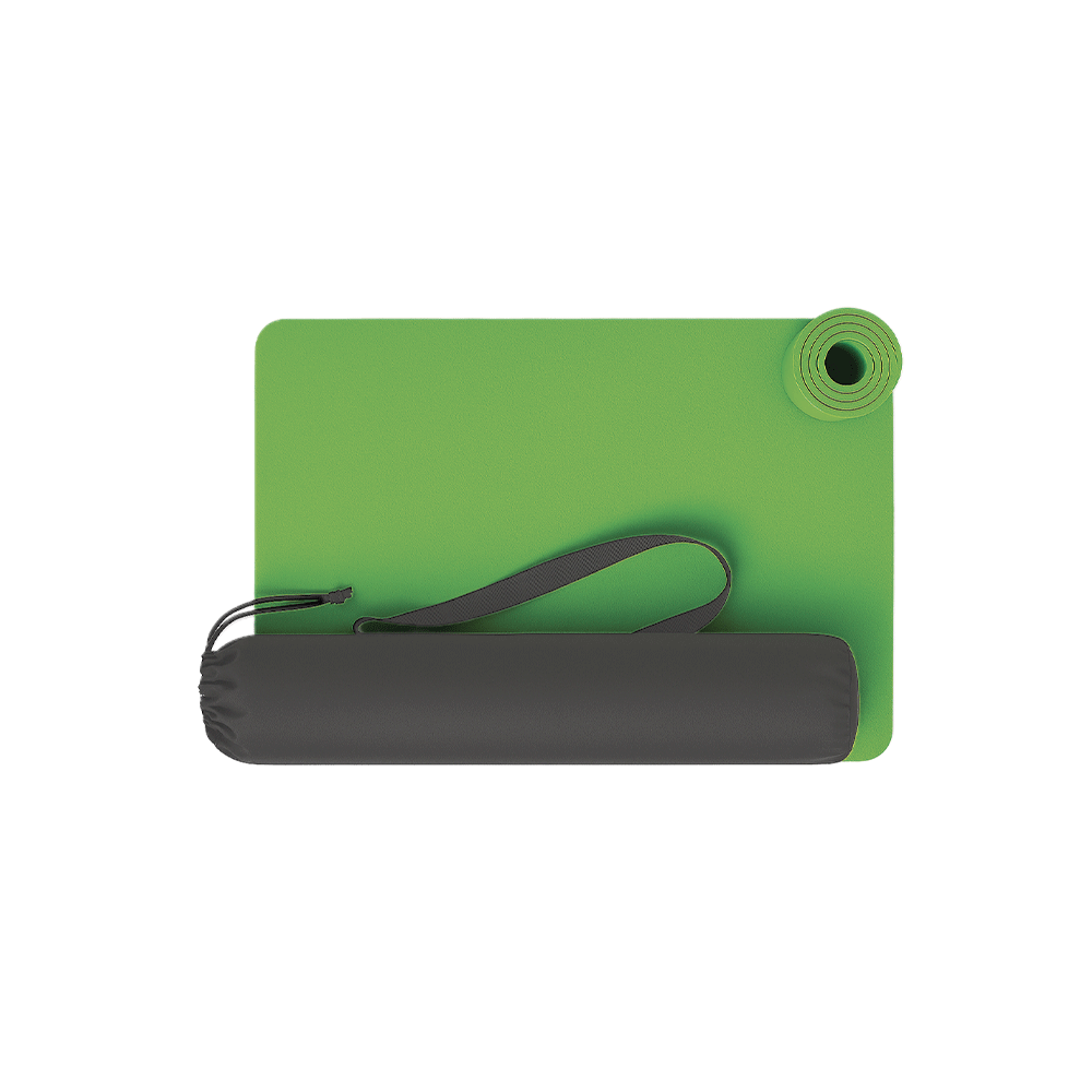 – Tappetino per yoga multiuso spessorato TPE riciclato antiscivolo, custodia in PET riciclato/polytex RPET riciclato (formato cm 173 x 61 x 0,6)