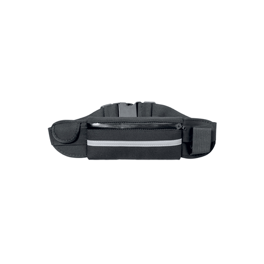 – Marsupio in polytex soft shell con banda riflettente, scomparso principale multiuso, fascia elasticizzata portaborraccia, tasca portachiavi, fascia cintura elasticizzata regolabile con fibbia, chiusura tascone con zip (formato cm 38,5 x 9,5)