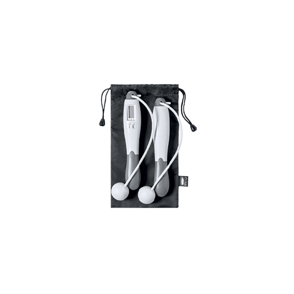 – Corda da salto in ABS FORTE, impugnature ergonomiche, display LCD con pulsanti di regolazione, sacca contenitore in polytex RPET riciclato, alimentazione a batterie incluse (formato cm 17 x 21 x 3,5)