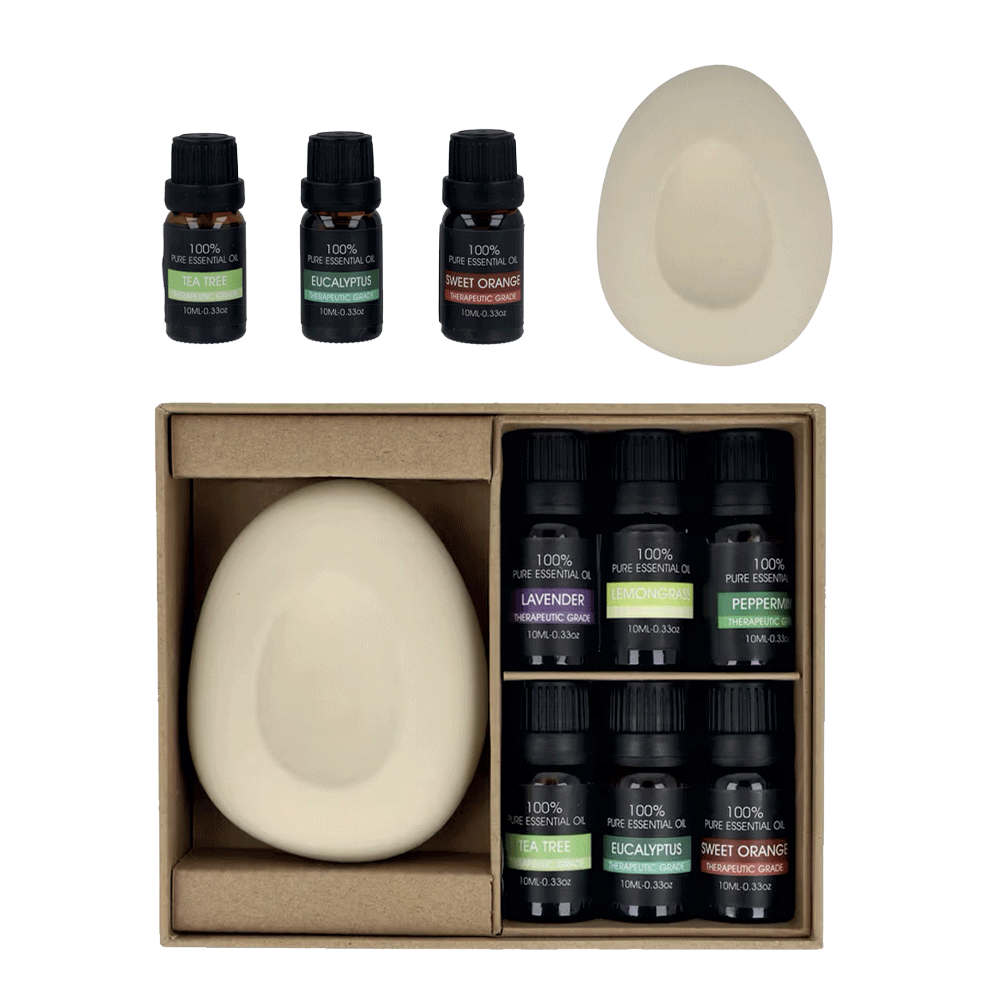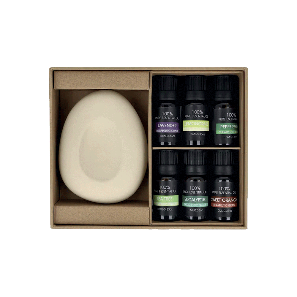 – Ciotola in pietra di ceramica naturale in 6 oli essenziali (10 ml cadauno)