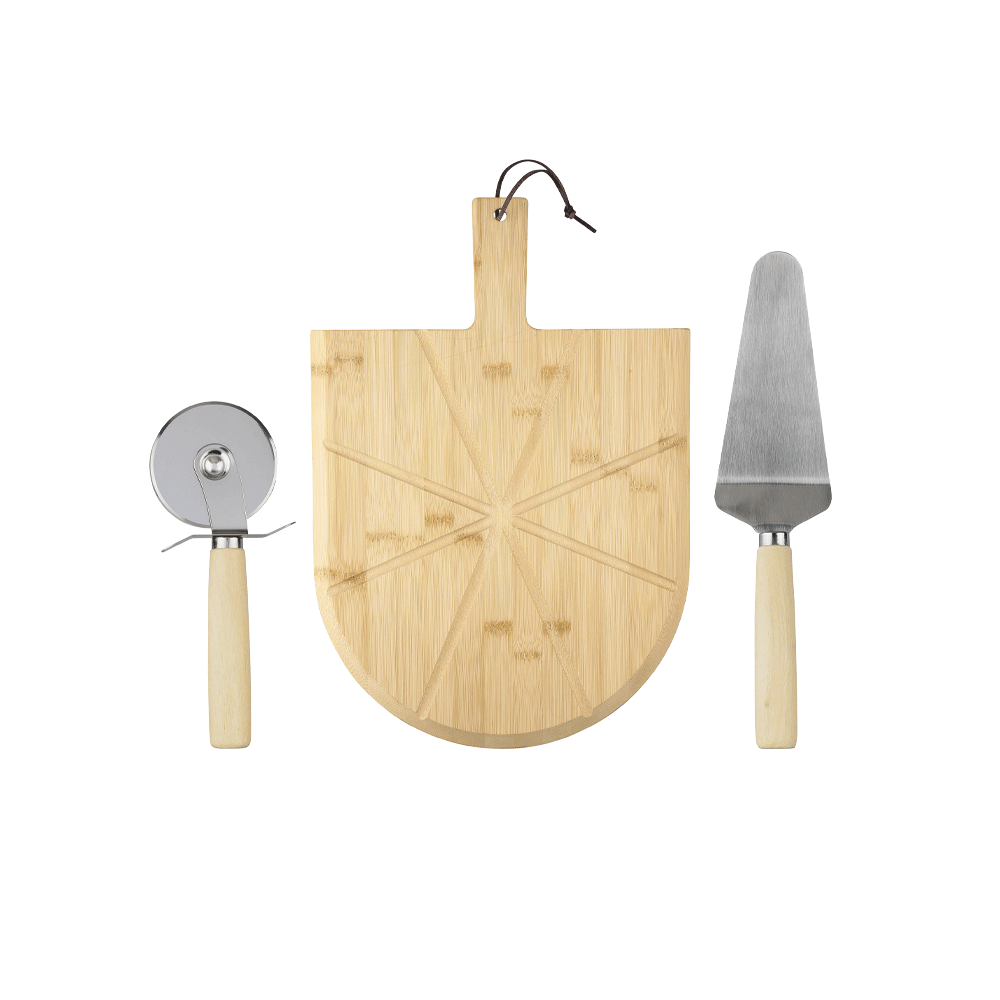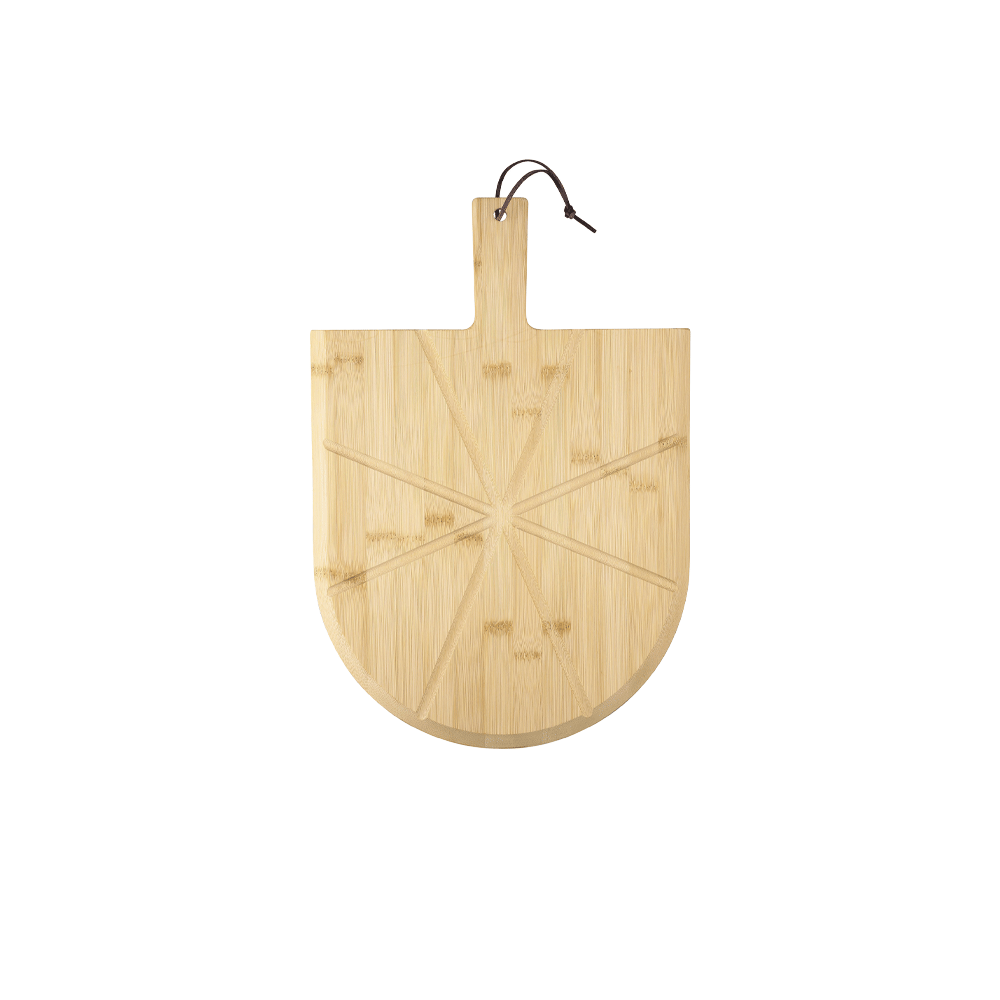 – Tagliere pizza in bambù con manico e guide pretagliate