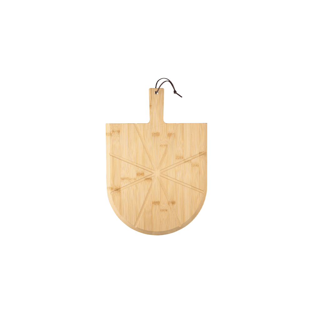 – Tagliere pizza con manico e cordino di appendimento legno in bambù naturale con guida di taglio