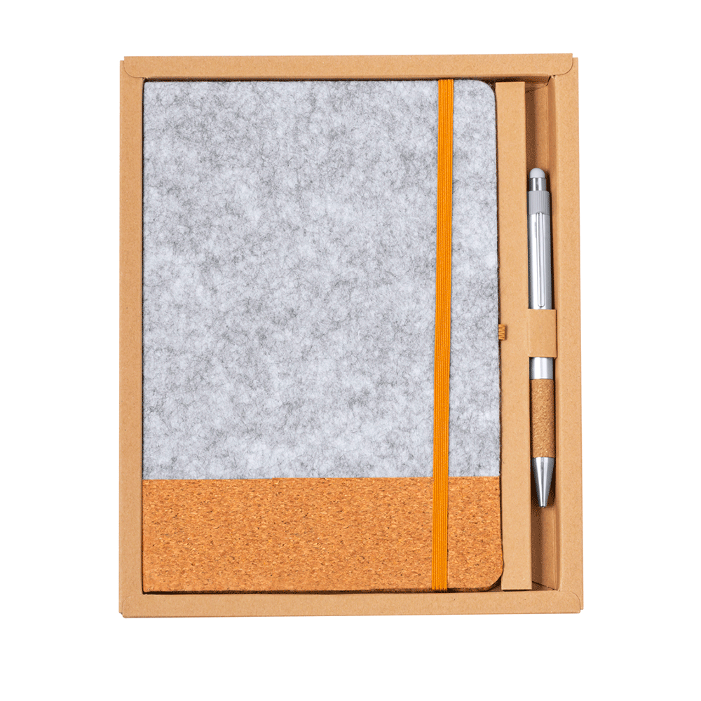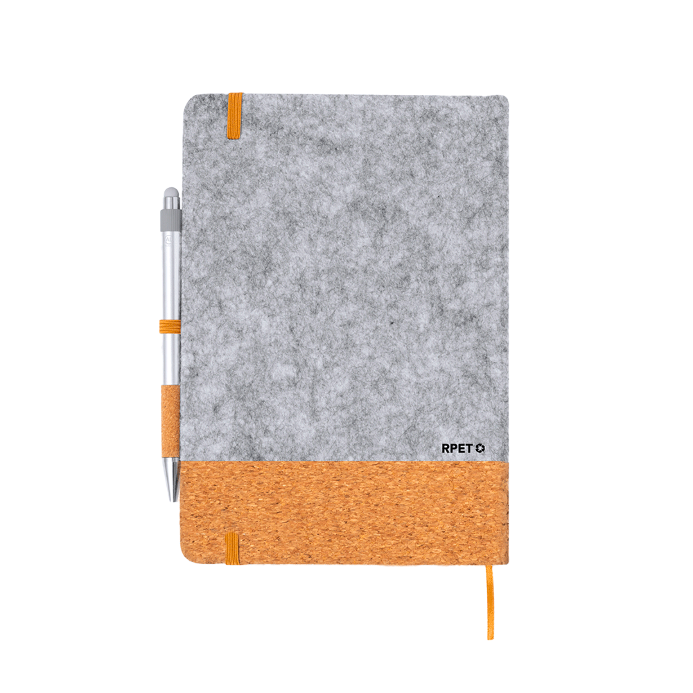– 80 pagine, grafica a righe - Sfera fibrado di feltro RPET, alluminio riciclato, sughero