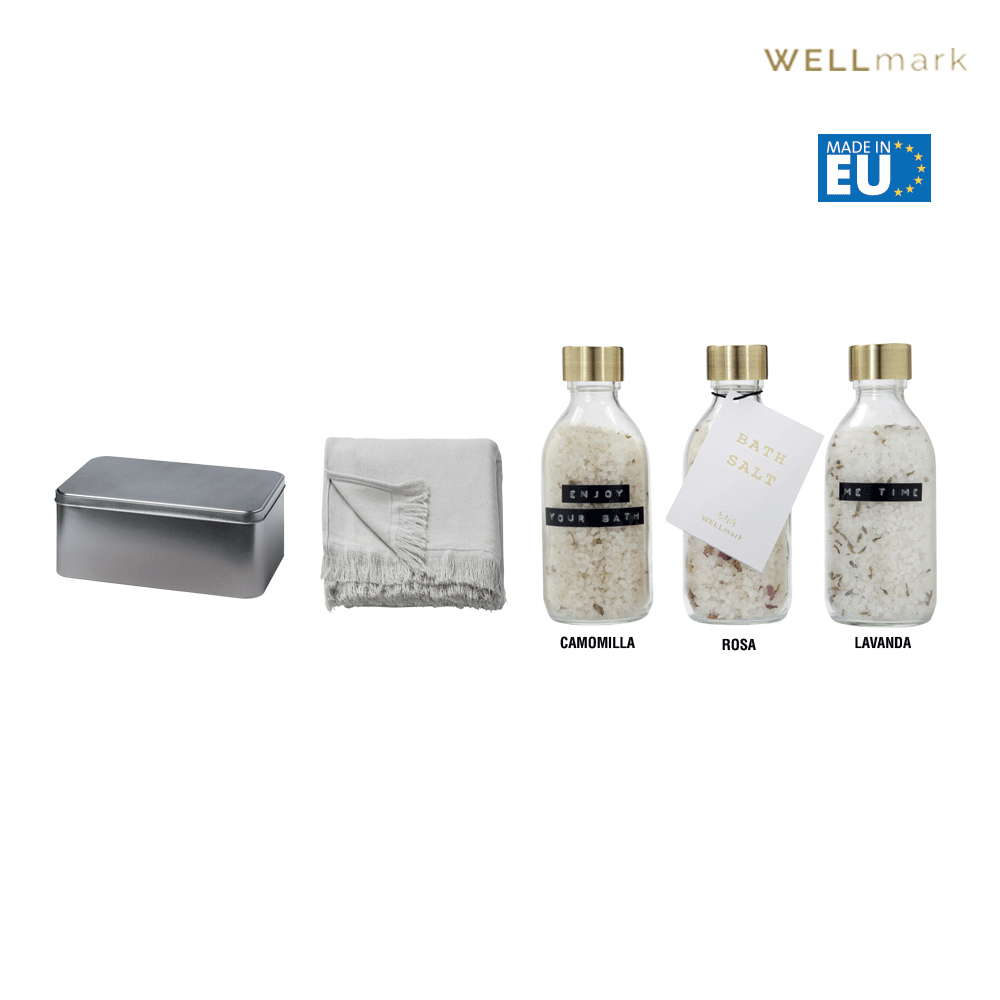 – Tris sali da bagno (200 ml cadauno) flaconi in vetro