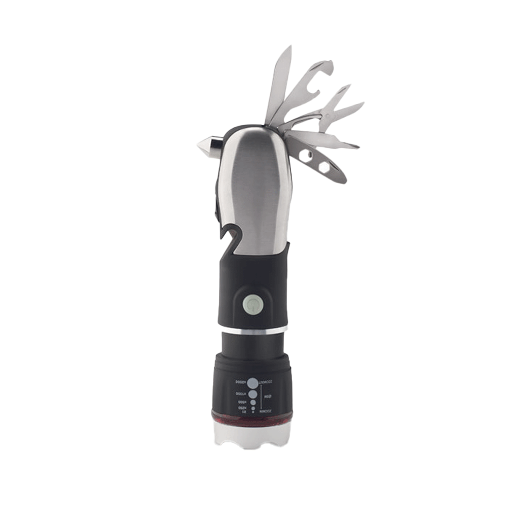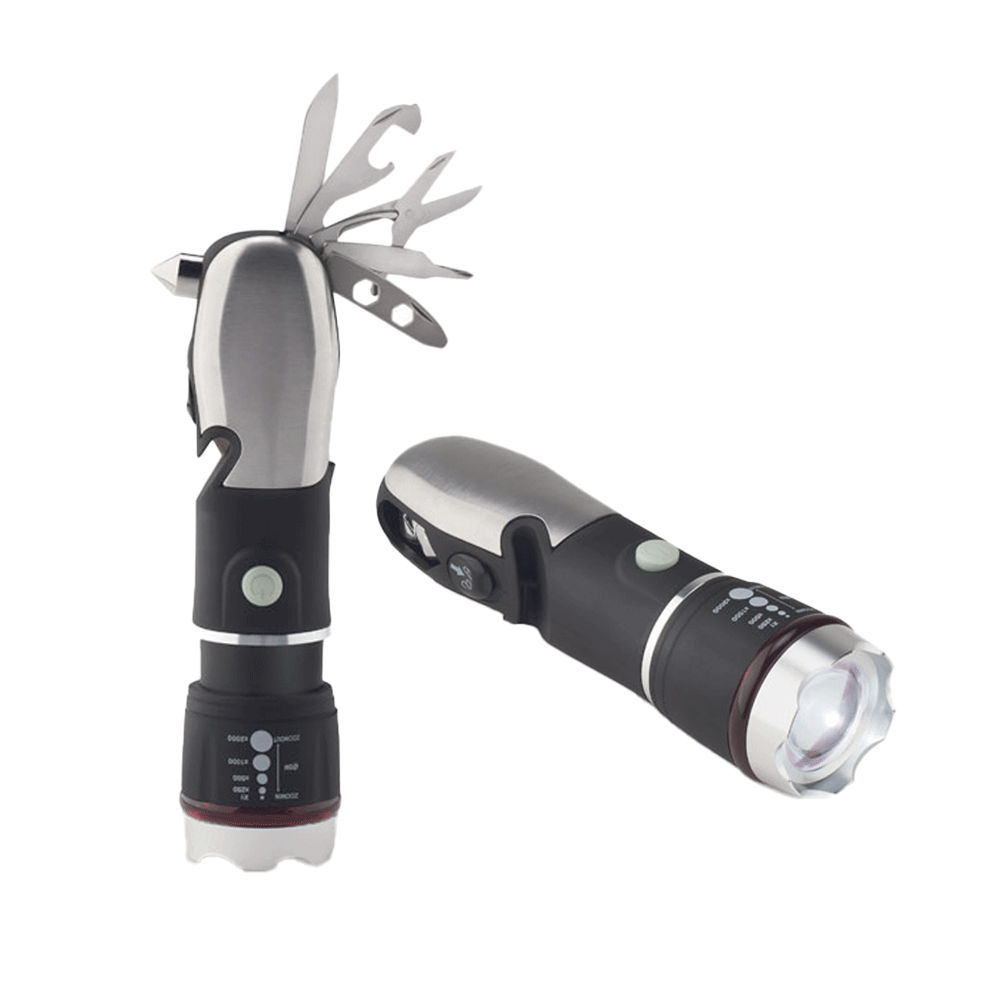 – Multiattrezzi: martello, taglierino, rompivetro, forbice, apribottiglie, coltellino, cacciaviti, etc.