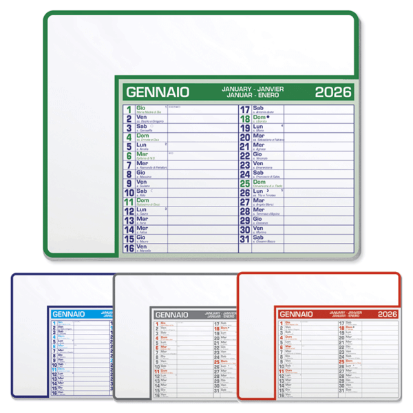 Agende & Agende, Planning Tavolo, Calendari & Calendari, Calendo Planning da Tavolo, Notes & Altro, Blocchi Memo Post-it, Calendari Perpetui da Tavolo, Bags & Travel, Custodie Portadocumenti, Choice Eco, Made in Italy